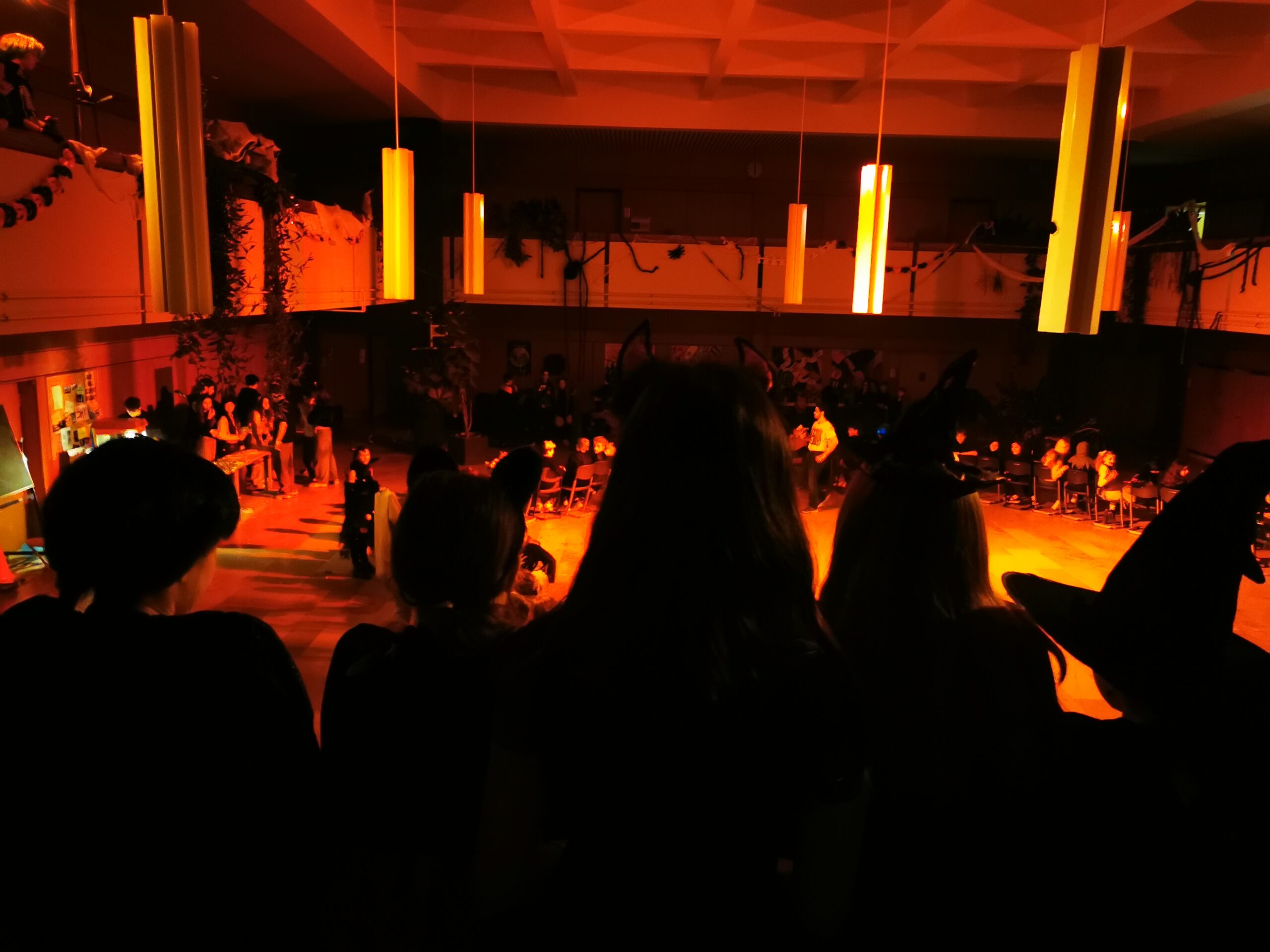 Bereits während der regulären Schulzeit startete der Halloween-Day, organisiert vom AK Gute Laune der SMV. Viele Schülerinnen und Schüler sowie Lehrkräfte erschienen kreativ und fantasievoll verkleidet im Unterricht und sorgten für eine wunderbar gruselige Stimmung im Schulhaus. In den Pausen wurde die Aula zum Party-Hotspot: Zu Musik wurde getanzt, gelacht und natürlich durften auch Süßigkeiten nicht fehlen.