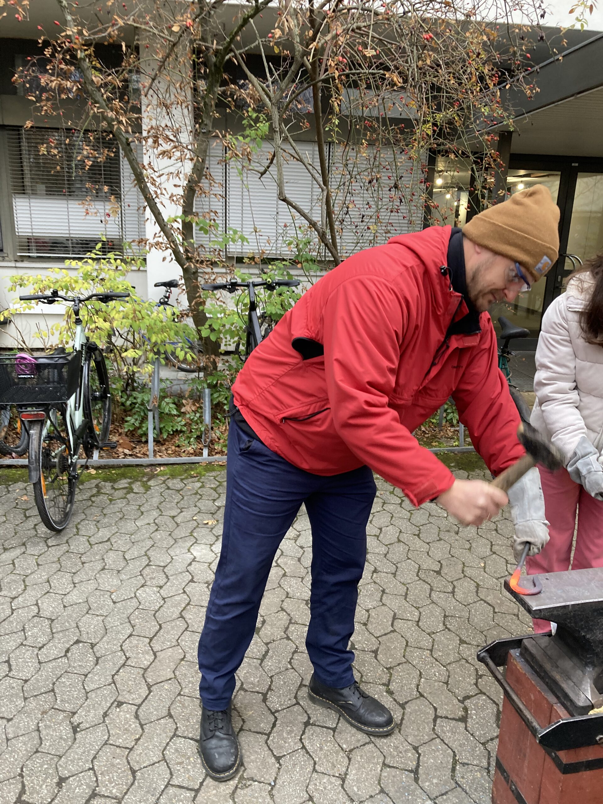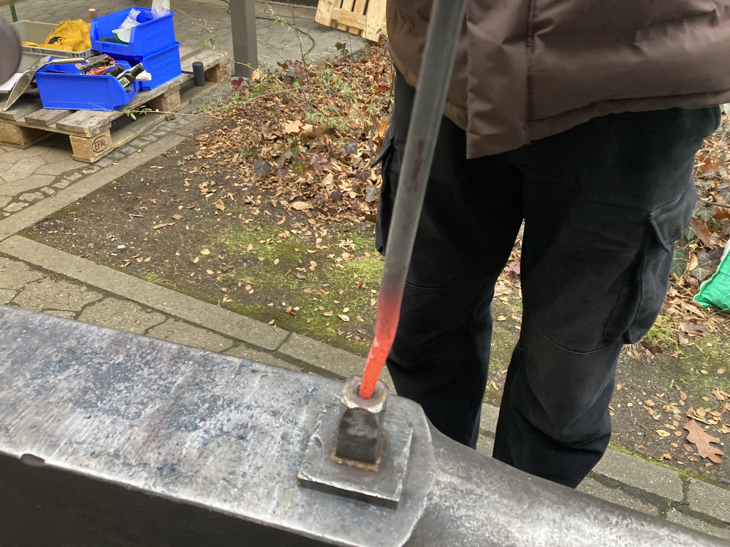 Nach einer kurzen theoretischen Einführung durch Maximilian Görltz, Doktorant an der Fakultät, ging es hinaus in die Kälte an Esse und Amboss.